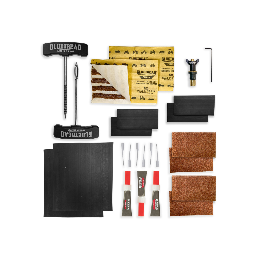The GlueTread Complete Tire Repair Kit is your all-in-one solution for addressing any tire damage you encounter on the trail. Whether you need to repair a sidewall, replace a valve stem, or plug a puncture, this kit has you covered with high-quality components made for off-road enthusiasts.